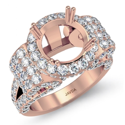 Round Diamond Engagement Ring Antique & Vintage Halo Pave Semi Mount 18k Rose Gold (3.5Ct. tw.)
