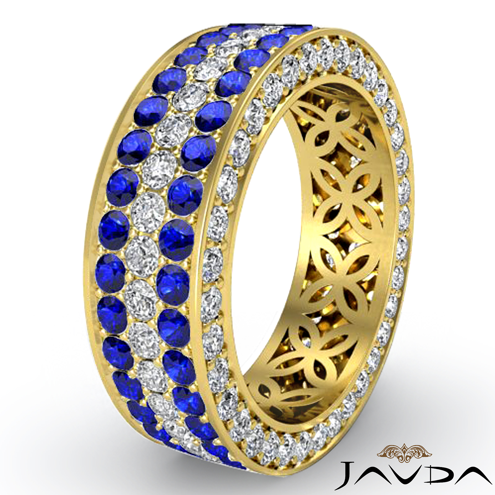 Three Row Sapphire Diamond Filigree Women Eternity Wedding Band 14k Gold (1.2Ct. tw.)