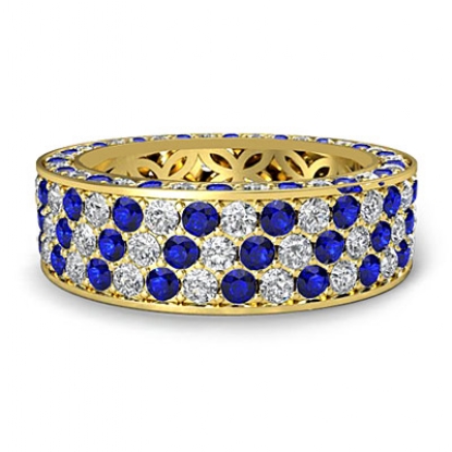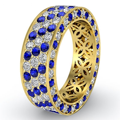 3 Row Eternity Women Ring Sapphire Diamond Anniversary Band 18k Gold (1.2Ct. tw.)