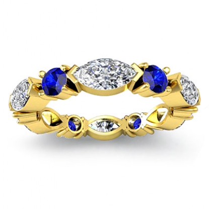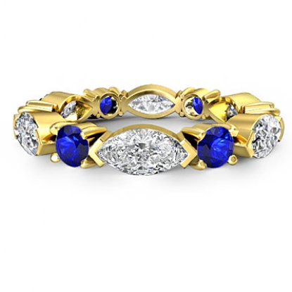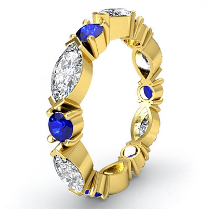 Women's Eternity Band Marquise Round Blue Sapphire Diamond 18k Gold Ring (1.2Ct. tw.)