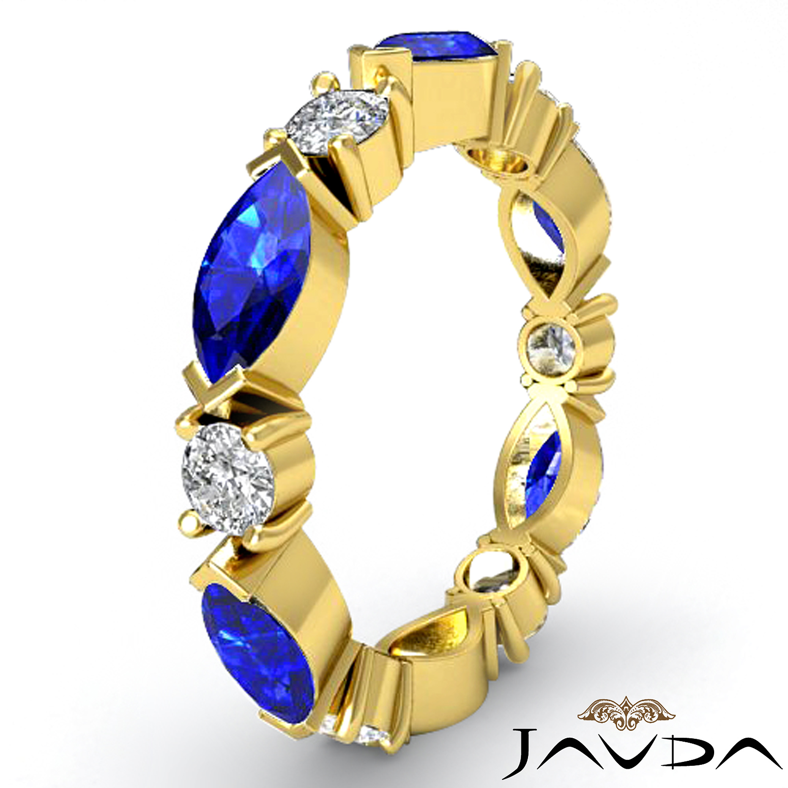 Marquise Cut Sapphire Diamond Set on V Prong & 0.49 Carat Round Diamond Perfect Women's Eternity Wedding Band casted in 14k Gold Yellow Ring. (0.5Ct. tw.)