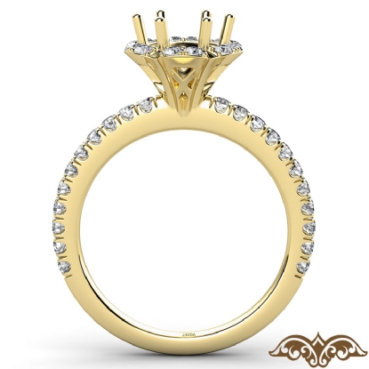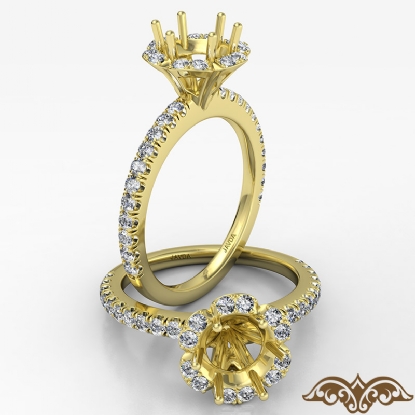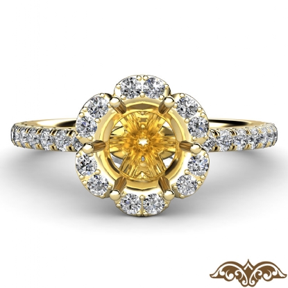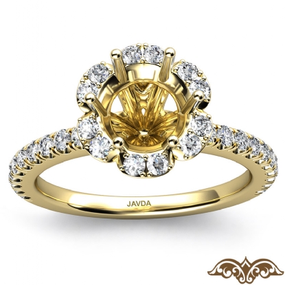 Flower Halo Round Semi Mount Diamond Engagement Ring French Pave 18k Gold (0.5Ct. tw.)