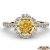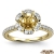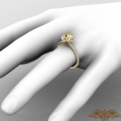 Gorgeous flower halo diamond engagement ring made from 18k Gold Yellow. This masterpiece features french U split pave set side diamonds on shank and sparkling pave set halo surrounded round cut semi mount. Available in white gold, yellow gold, rose gold and platinum. (0.5Ct. tw.)