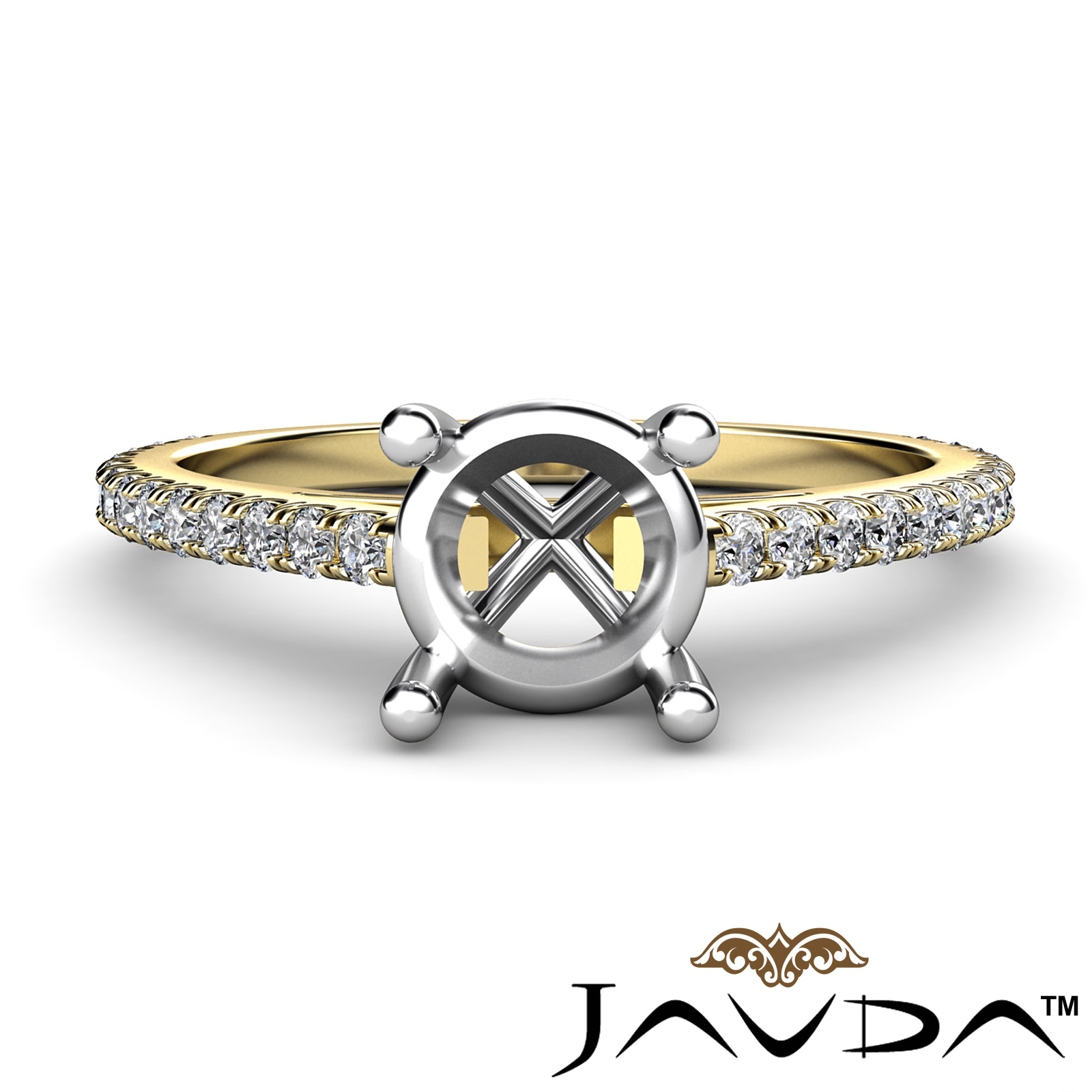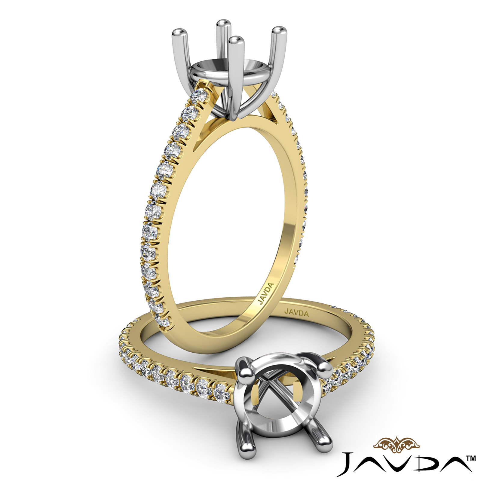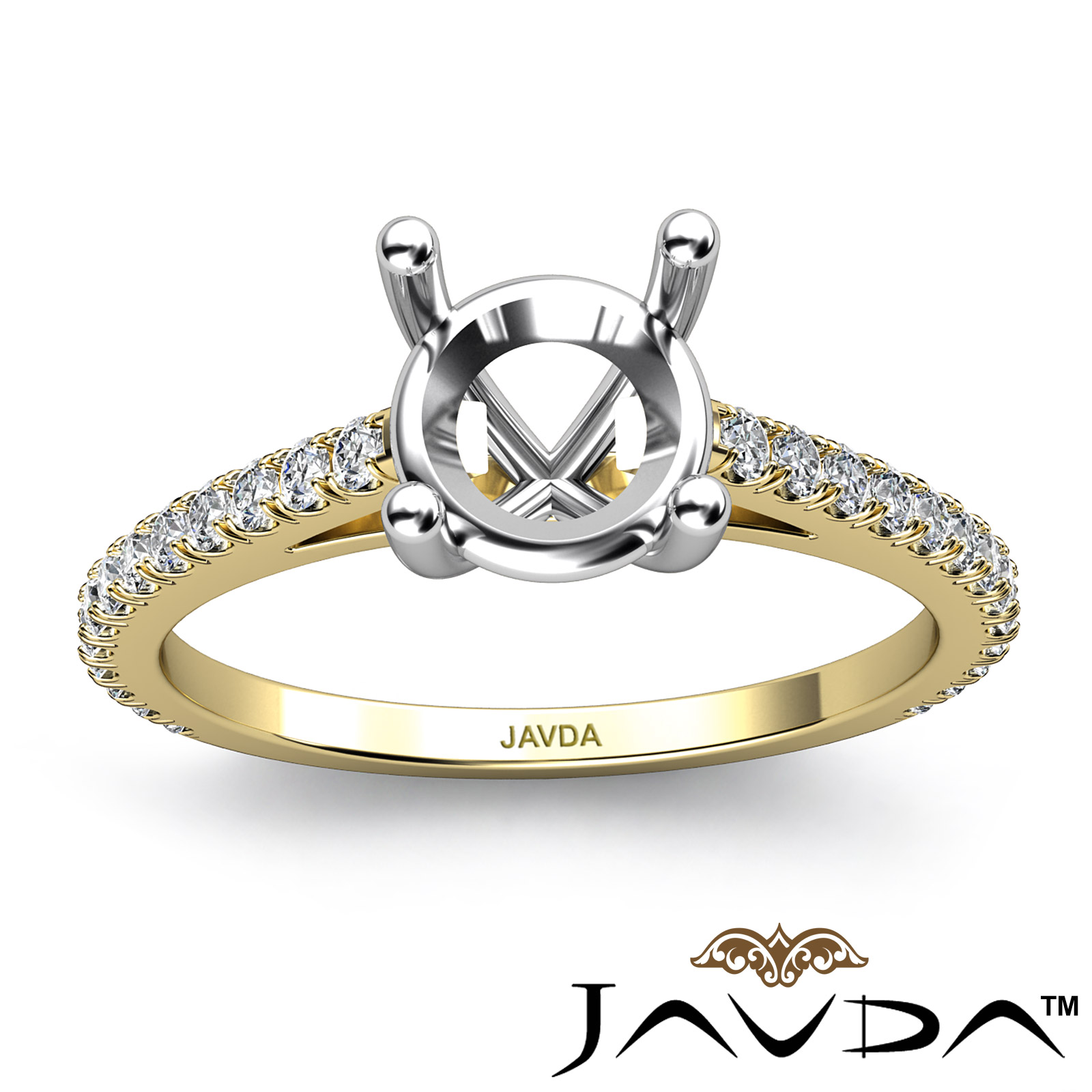 Classic and elegant this french U split pave sidestone semi mount diamond engagement ring made from 14k Gold Yellow. Delicately designed this ring ideally for a round cut center stone and beautifully accented tiny diamonds. Available in white gold, yellow gold, rose gold and platinum. (0.3Ct. tw.)