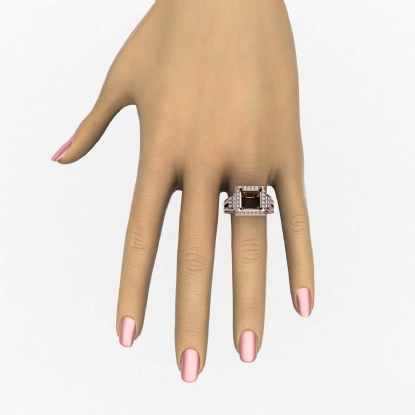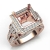 Magnificent in its own way, the made in 14k Rose Gold engagement ring showcases a semi-mount halo of sparkling round pave-set diamonds, with round diamonds in pave setting on the gorgeous shank. (2.25Ct. tw.)