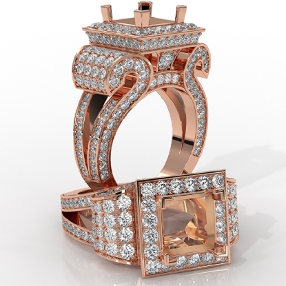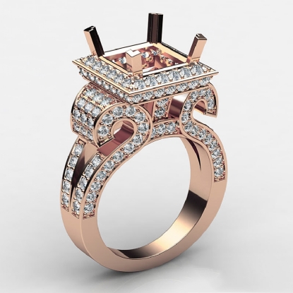 Diamond Princess Antique & Vintage Semi Mount Engagement Halo Setting Ring 14k Rose Gold (2.25Ct. tw.)