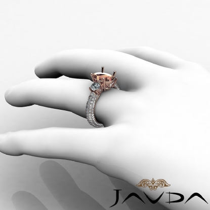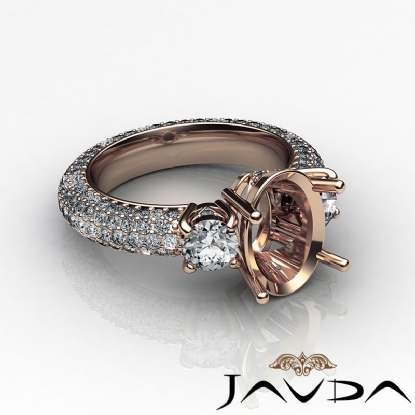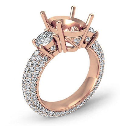 3 Stone Round Diamond Engagement Ring Setting 14k Rose Gold Oval Semi Mount (2.8Ct. tw.)