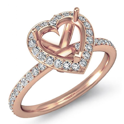 Diamond Engagement Heart Ring 14k Rose Gold Halo Semi Mount (0.65Ct. tw.)