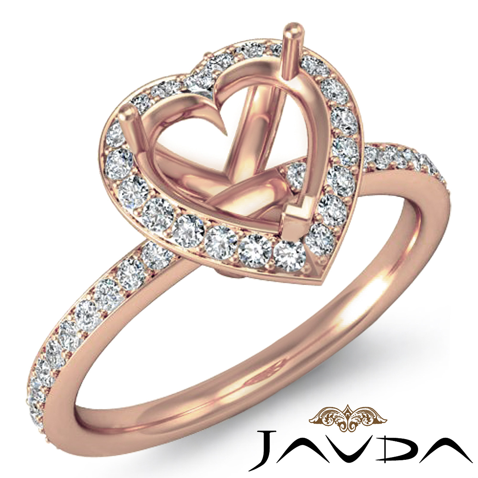 Diamond Engagement Heart Ring 18k Rose Gold Halo Semi Mount (1Ct. tw.)