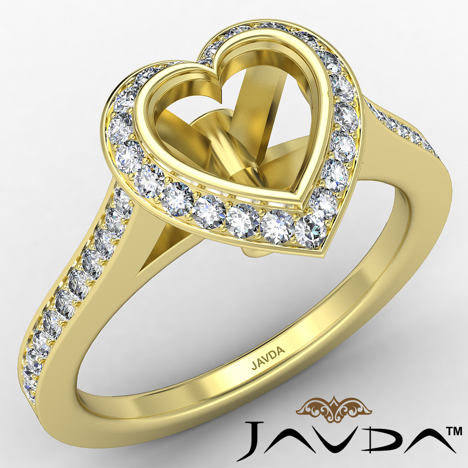 Halo Pave Setting Diamond Engagement Ring 14k Gold Heart Semi Mount (0.47Ct. tw.)