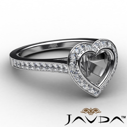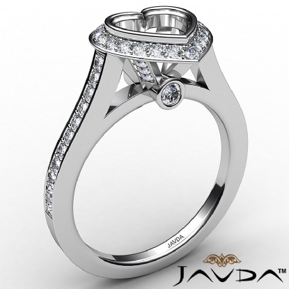 Halo Pave Setting Diamond Engagement Ring 18k W Gold Heart Semi Mount (0.47Ct. tw.)