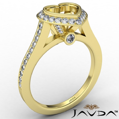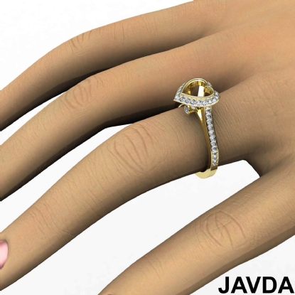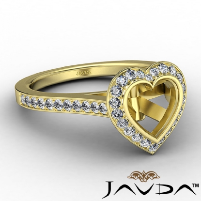 Halo Pave Setting Diamond Engagement Ring 18k Gold Heart Semi Mount (0.47Ct. tw.)