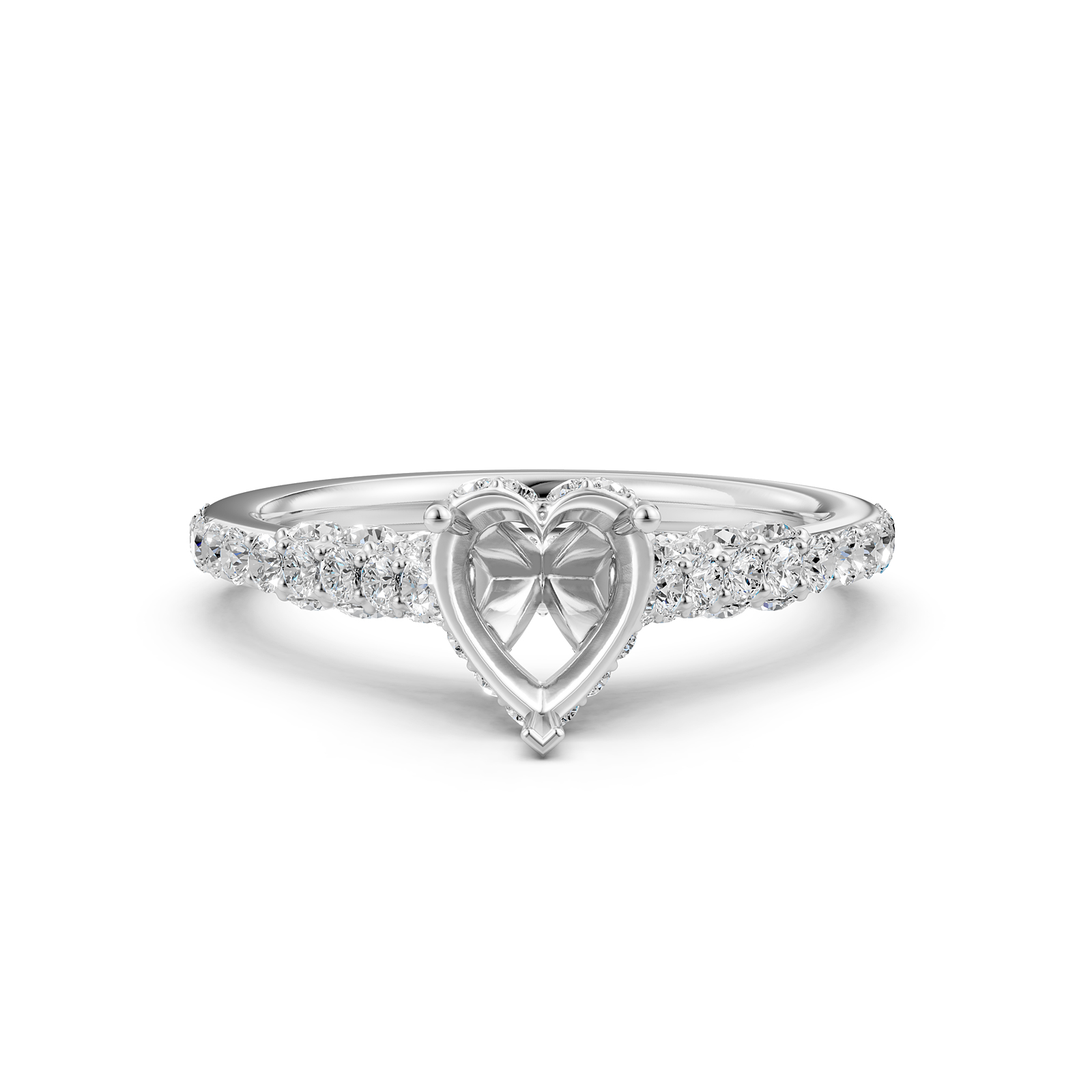 Diamond Engagement Pave Setting Platinum Heart Semi Mount Ring (0.55Ct. tw.)