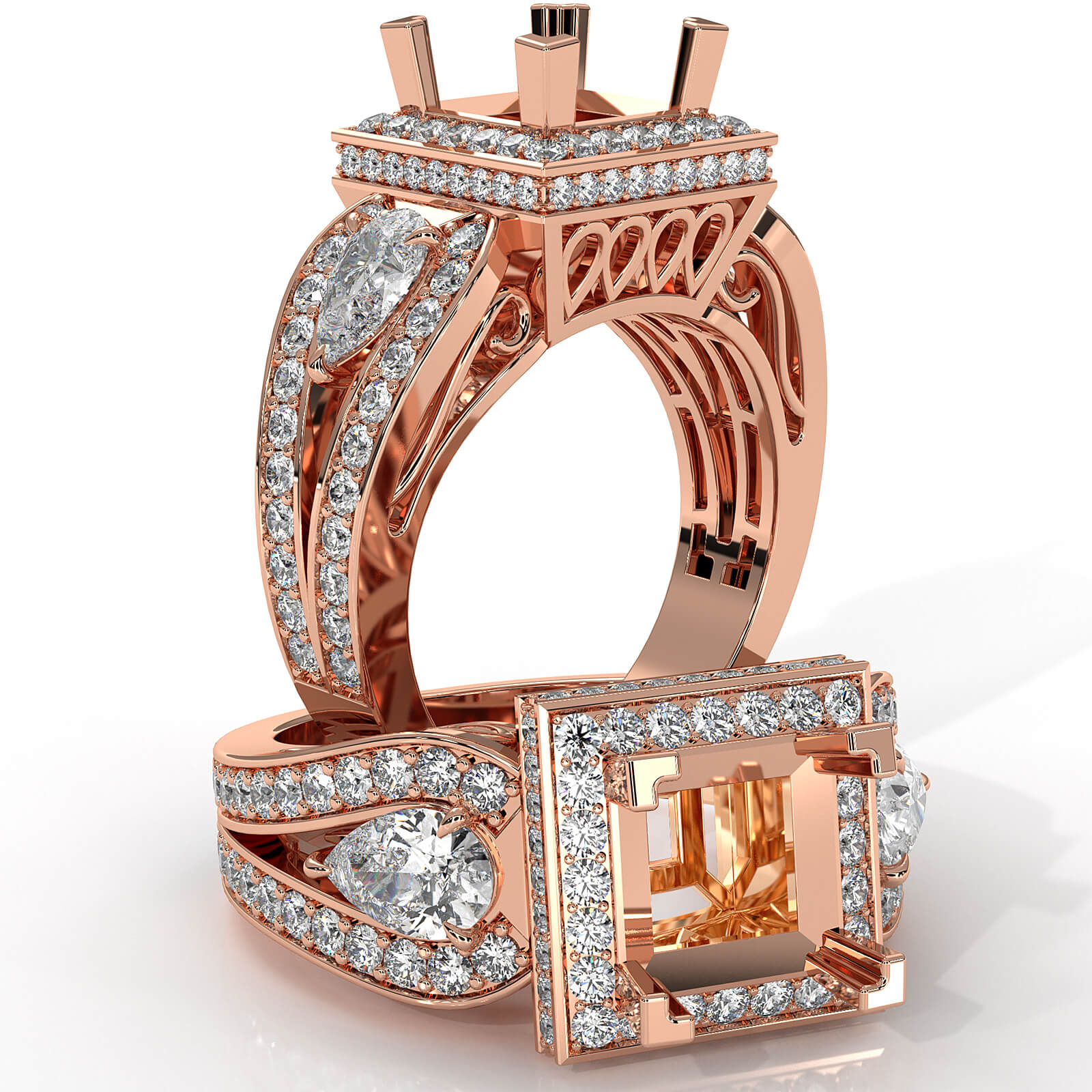 3 Stone Princess Semi Mount Circa Halo Diamond Engagement Ring 14k Rose Gold (1.85Ct. tw.)