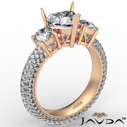 3 Stone Diamond Eternity Heart Semi Mount Engagement Ring 14k Rose Gold (2.64Ct. tw.)