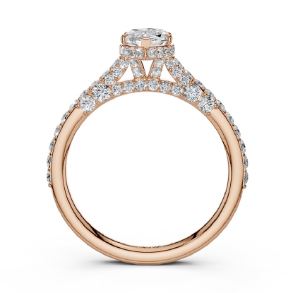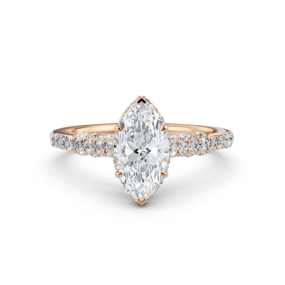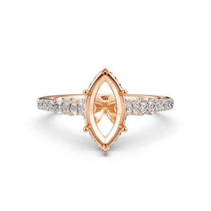 Sparkling circa halo bridge accent marquise semi mount diamond engagement ring crafted in 18k Rose Gold. Features of natural round diamonds among the bridge accent with circa halo and shank in an amazing micro pave setting.