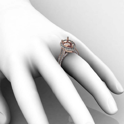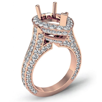 Round Halo Pave Setting Vintage Diamond Engagement Ring made in 14k Rose Gold and can be set in Round Semi Mount. (2.1Ct. tw.)