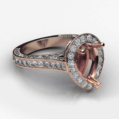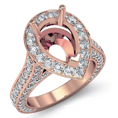 Pear Semi Mount Halo Pave Setting Diamond Engagement Ring 14k Rose Gold (2.1Ct. tw.)