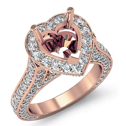 Heart Semi Mount Diamond Engagement Halo Pave Setting Ring 14k Rose Gold (2.1Ct. tw.)