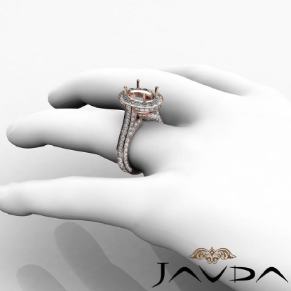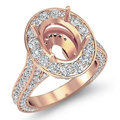 Diamond Engagement Halo Setting Ring Oval Shape Semi Mount 14k Rose Gold (2.1Ct. tw.)