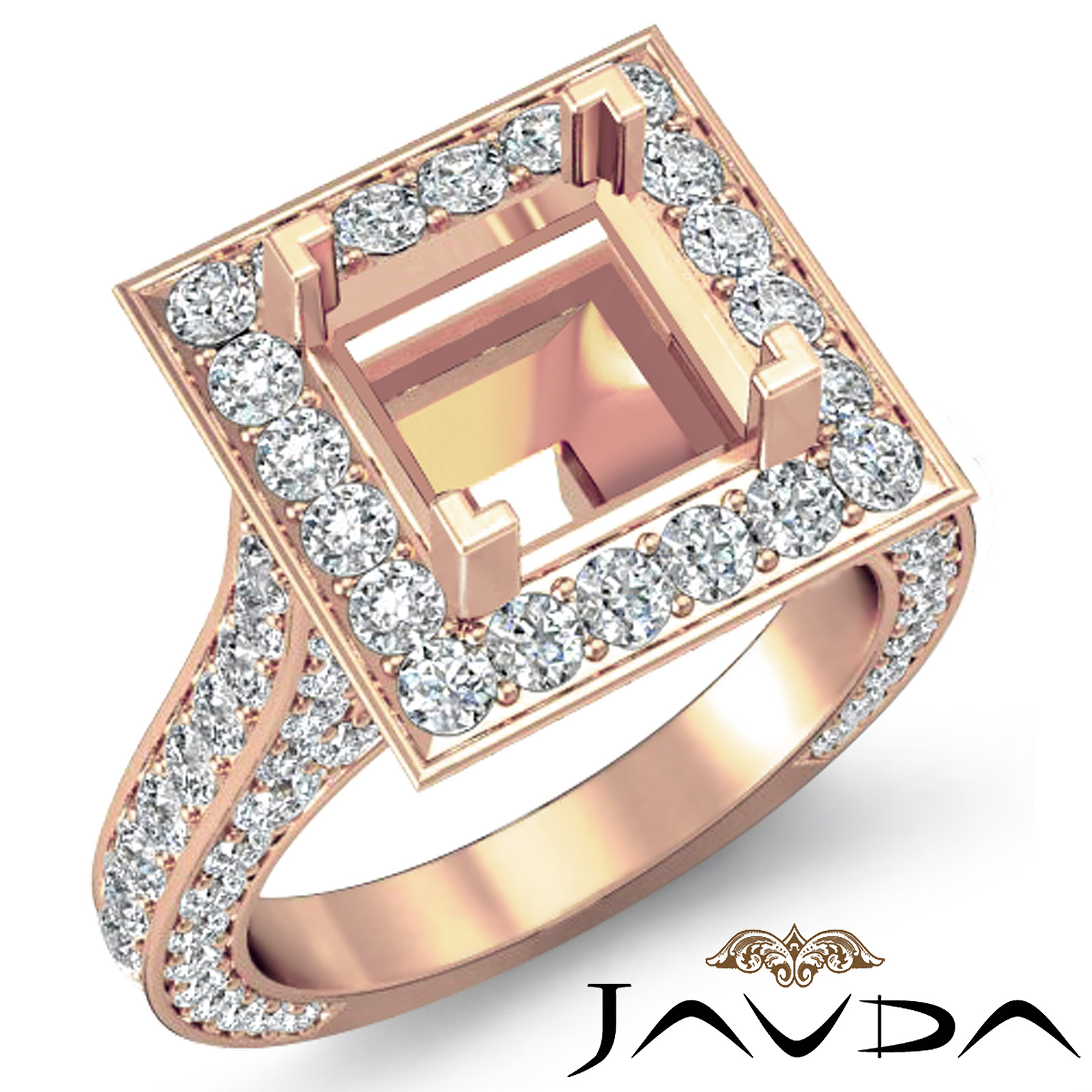 Diamond Engagement Ring Halo Pave Setting 18k Rose Gold Princess SemiMout (2.1Ct. tw.)