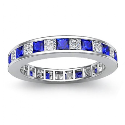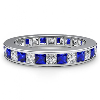 Princess Channel Set Sapphire Diamond Eternity Band Women Ring Platinum (0.9Ct. tw.)