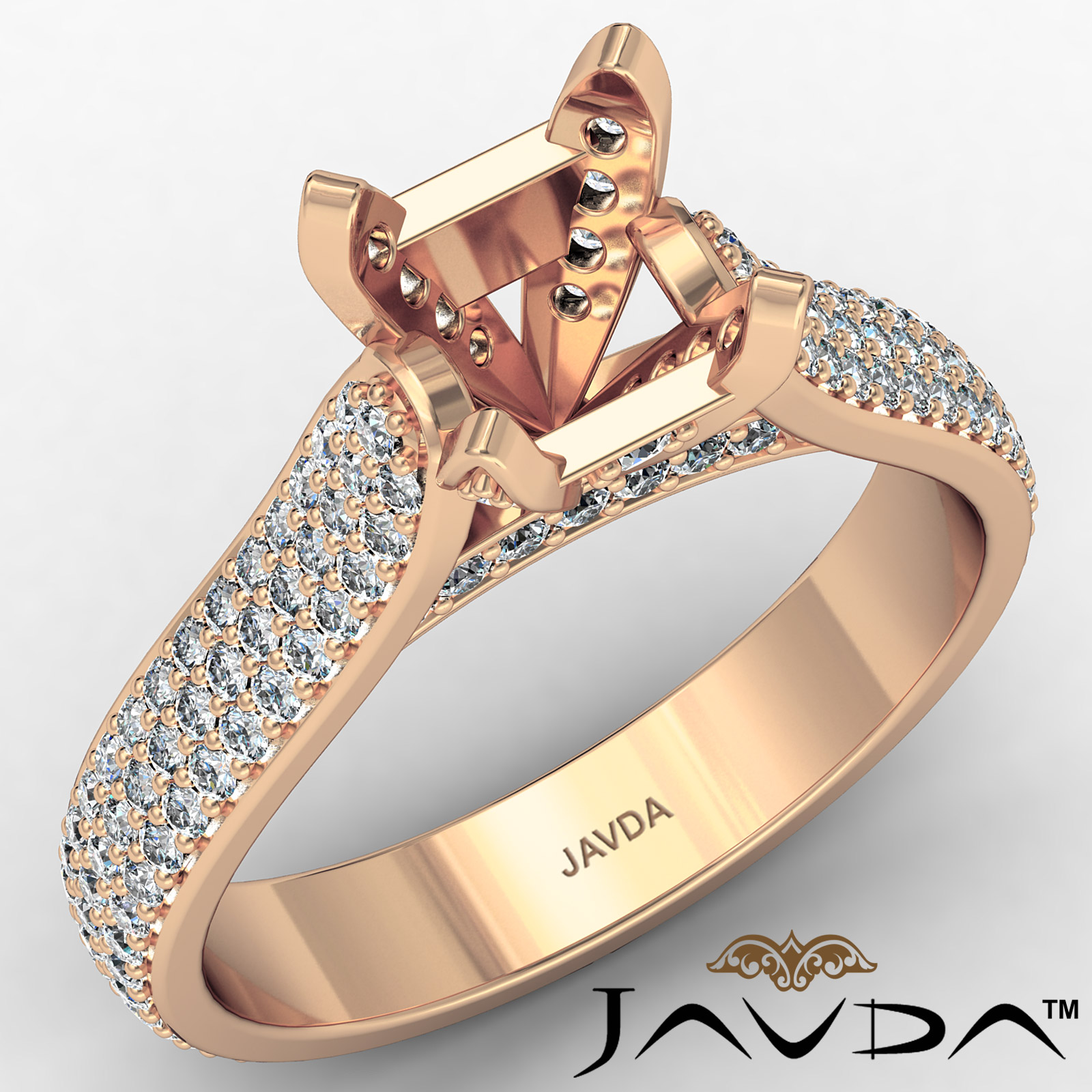 Bridge Accent Petal Prong Princess Semi Mount Engagement Ring 18k Rose Gold (1.45Ct. tw.)