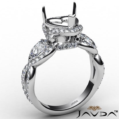Three 3 Stone Heart Shape Semi Mount Engagement Ring 18k W Gold (1.5Ct. tw.)