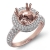 Halo Pave Set Diamond Engagement Round Semi Mount 14k Rose Gold Ring (1.25Ct. tw.)