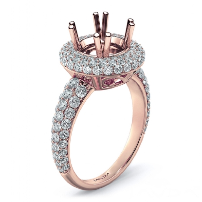Get ready for glamour, with this diamond engagement ring crafted in 14k Rose Gold. This round semi mount ring features . pave set round diamonds dazzling in halo & the shank. It weights 5.3 grams. (1.25Ct. tw.)