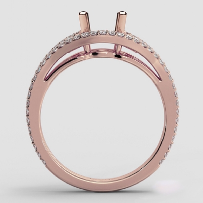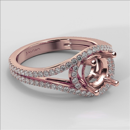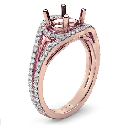 This Beautiful diamond engagement ring is made in glorious 14k Rose Gold. This round cut semi mount ring features . round diamonds in U cut shared prong setting along the split shank. It weights 4.8 grams (0.65Ct. tw.)