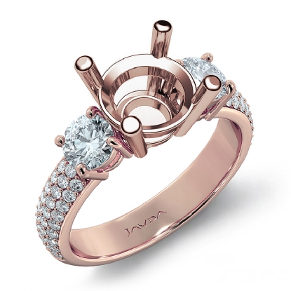 3 Stone Diamond Engagement Ring Round Semi Mount Prong Set 14k Rose Gold (0.9Ct. tw.)