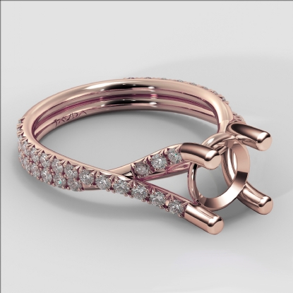 Worthy of your eternal love, this diamond engagement ring is made in 14k Rose Gold & features an round semi mount. It showcases . French Cut Pave round diamonds in criss cross gorgeous shank.It weights 3.9 gram. (0.45Ct. tw.)