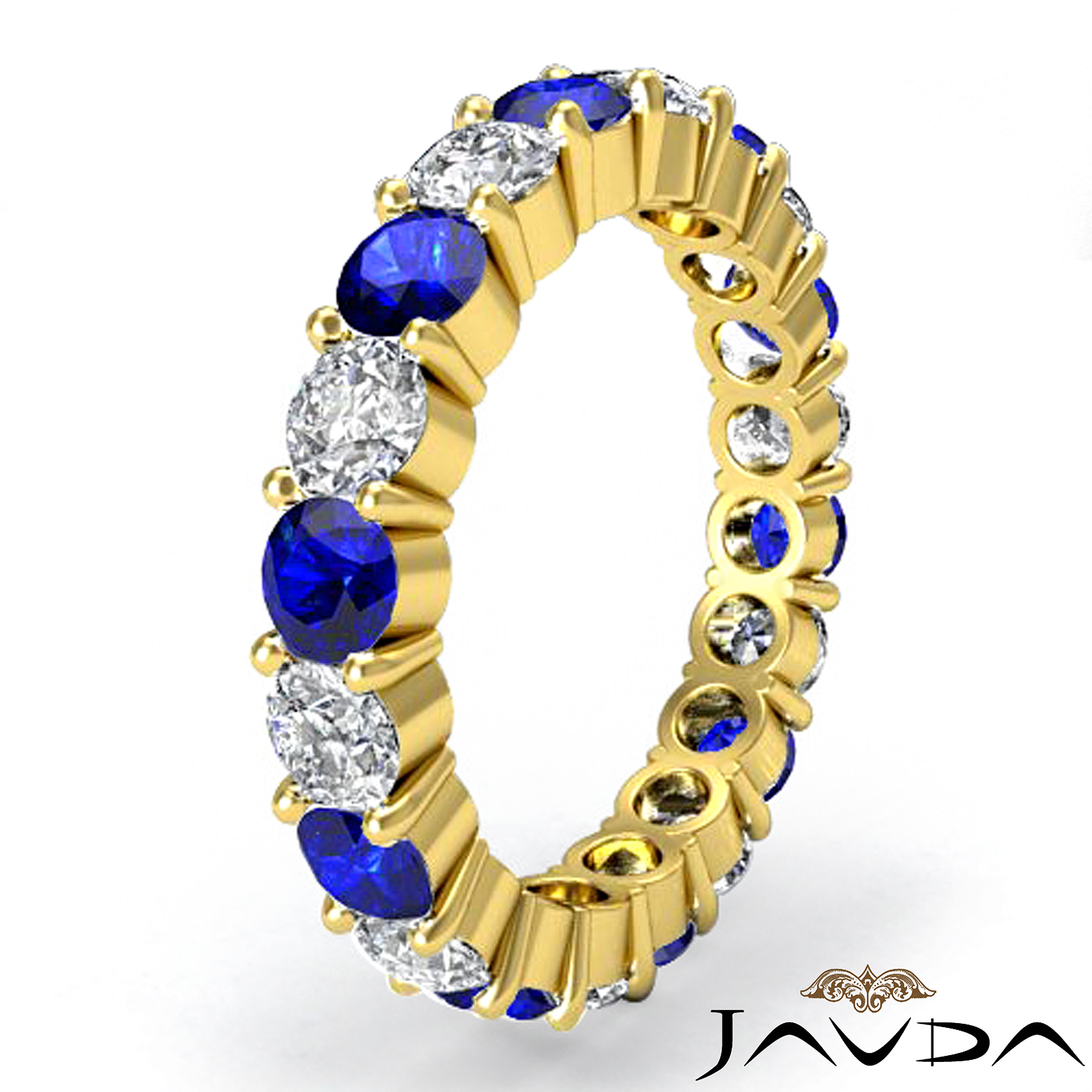 2.4 Carat Round Cut Sapphire Diamond prong Set Eternity Wedding Band made in 14k Gold Yellow Ring. (1.1Ct. tw.)