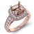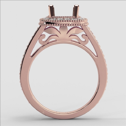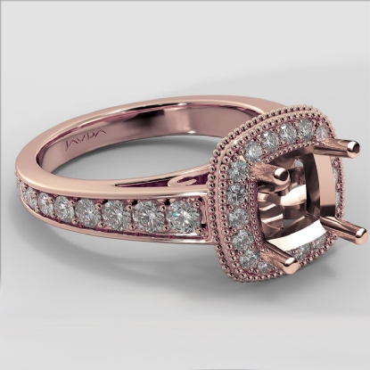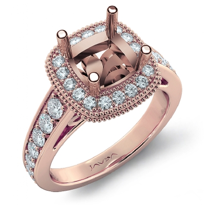 Diamond Engagement Cushion Semi Mount 14k Rose Gold Halo Milgrain Ring (0.8Ct. tw.)