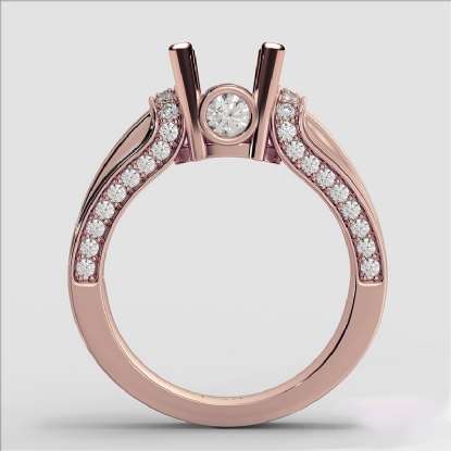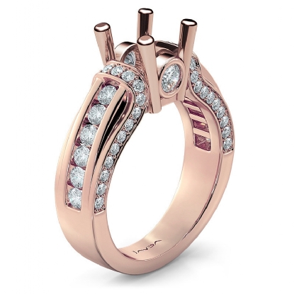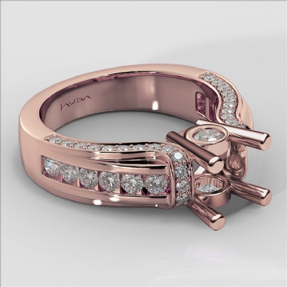 Bezel Channel Set Diamond Engagement Ring 14k Rose Gold Round Semi Mount (0.9Ct. tw.)
