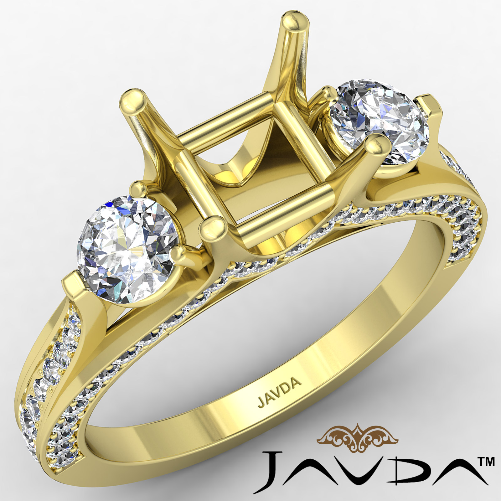 Three 3 Stone Princess Diamond Engagement Ring Set 14K W Gold Semi Mount 1.30Ct