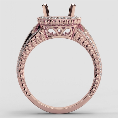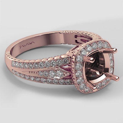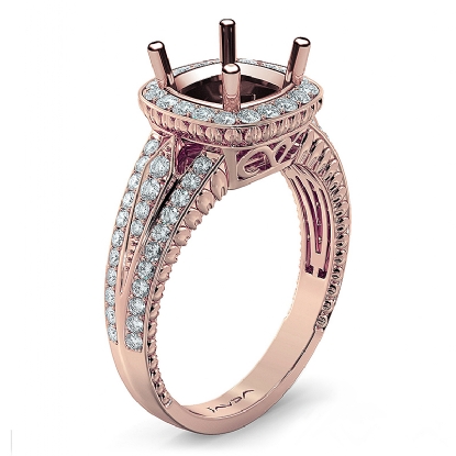 Diamond Vintage Engagement Halo Ring Cushion Semi Mount 14k Rose Gold Band (0.8Ct. tw.)