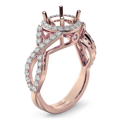 Halo XOXO Diamond Engagement Ring 14k Rose Gold Round Semi Mount Band (0.9Ct. tw.)