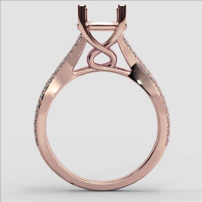 French Cut Pave Diamond Engagement Ring 14k Rose Gold Round Semi Mount (0.44Ct. tw.)