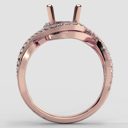 Diamond Engagement Ring Round Semi Mount 14k Rose Gold Halo Pave Setting (0.34Ct. tw.)
