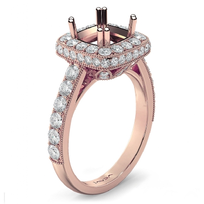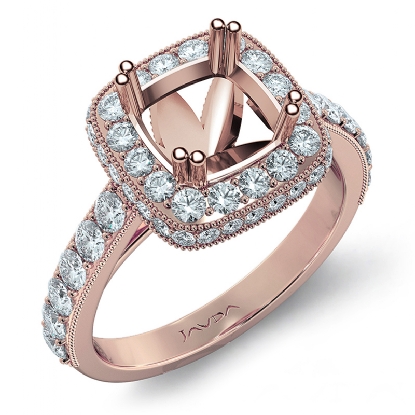 Halo Pave Diamond Engagement Cushion Semi Mount Ring 14k Rose Gold Band (1.1Ct. tw.)