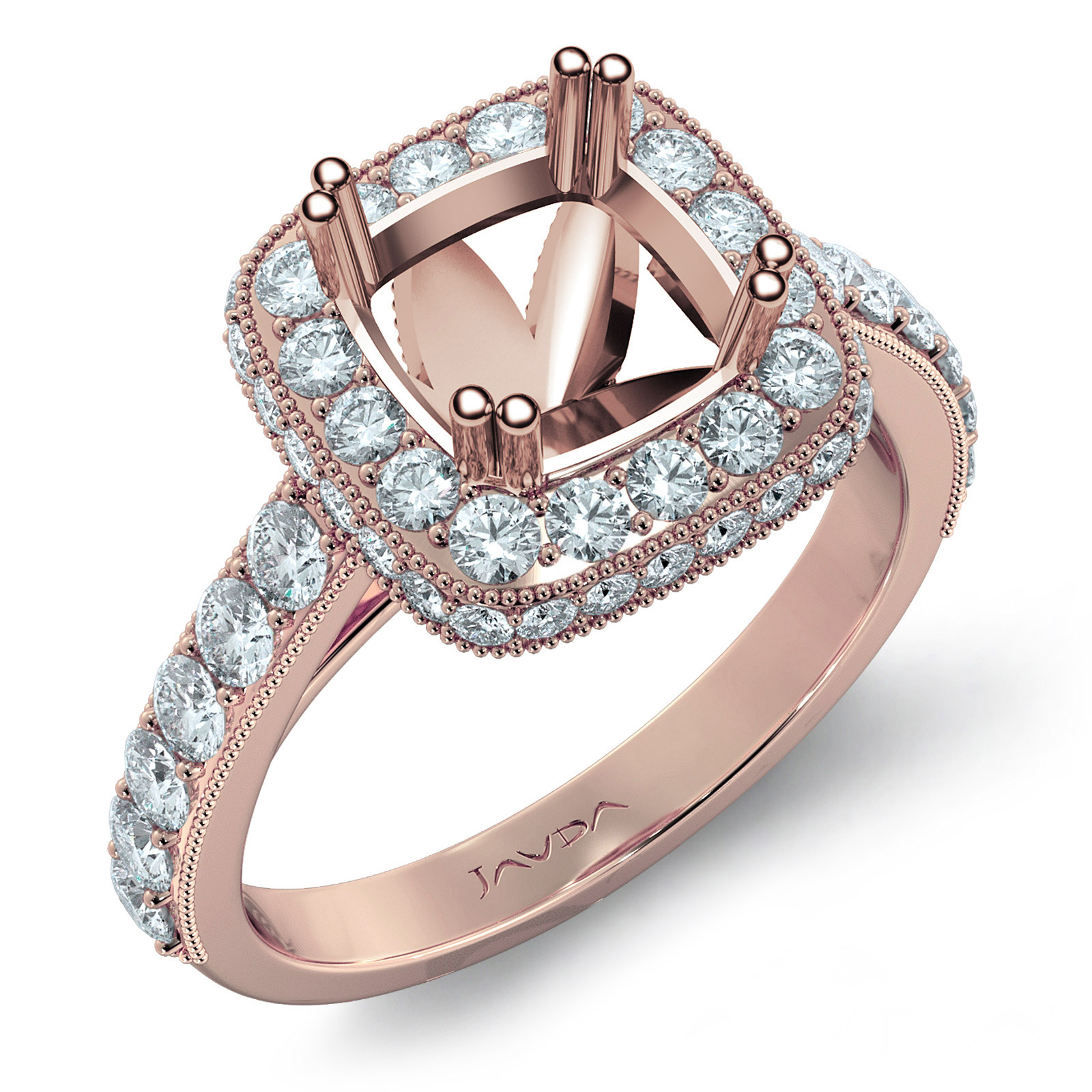 Halo Pave Diamond Engagement Cushion Semi Mount Ring 18k Rose Gold Band (1.1Ct. tw.)