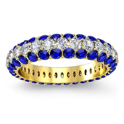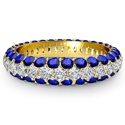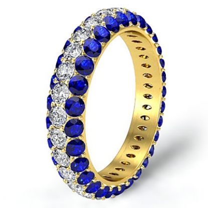 Round Pave Sapphire Diamond Women Eternity Ring Band made in 14k Gold Yellow. (0.9Ct. tw.)