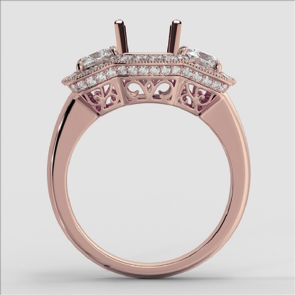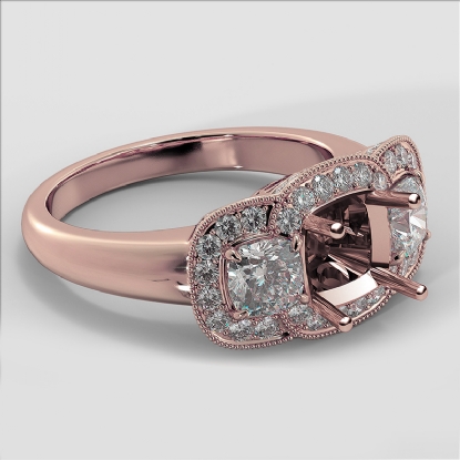 Diamond Engagement 3Stone Ring 18k Rose Gold Cushion Semi Mount Halo Band (1.05Ct. tw.)