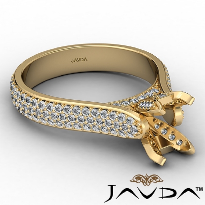 Eyes will be fixated on this one! This emerald semi mount diamond engagement ring is made in 14k Gold Yellow. It displays pave set round diamonds in halo & along the shank. (1.45Ct. tw.)