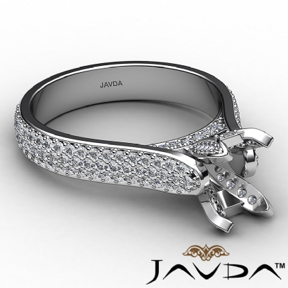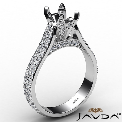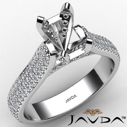 Halo Pave Set Diamond Engagement Emerald Semi Mount Ring 18k W Gold (1.45Ct. tw.)