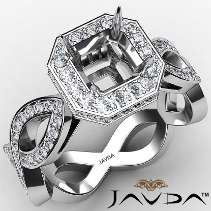 Asscher Cut Diamond Engagement Ring Pave Set Platinum Wedding Band (1.3Ct. tw.)
