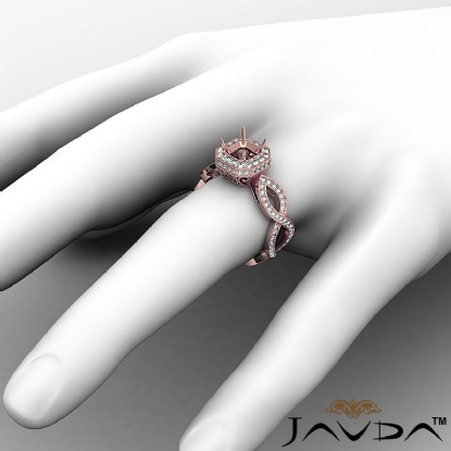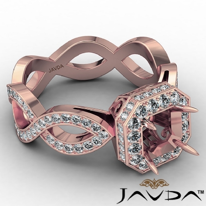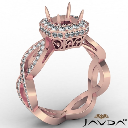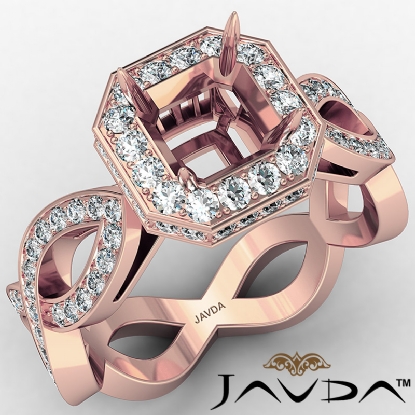 Undeniably striking, this 18k Rose Gold diamond engagement ring showcases a asscher semi mount in halo setting, with pave set round diamonds dazzling on the halo and the beautiful criss-cross shank. (1.3Ct. tw.)
