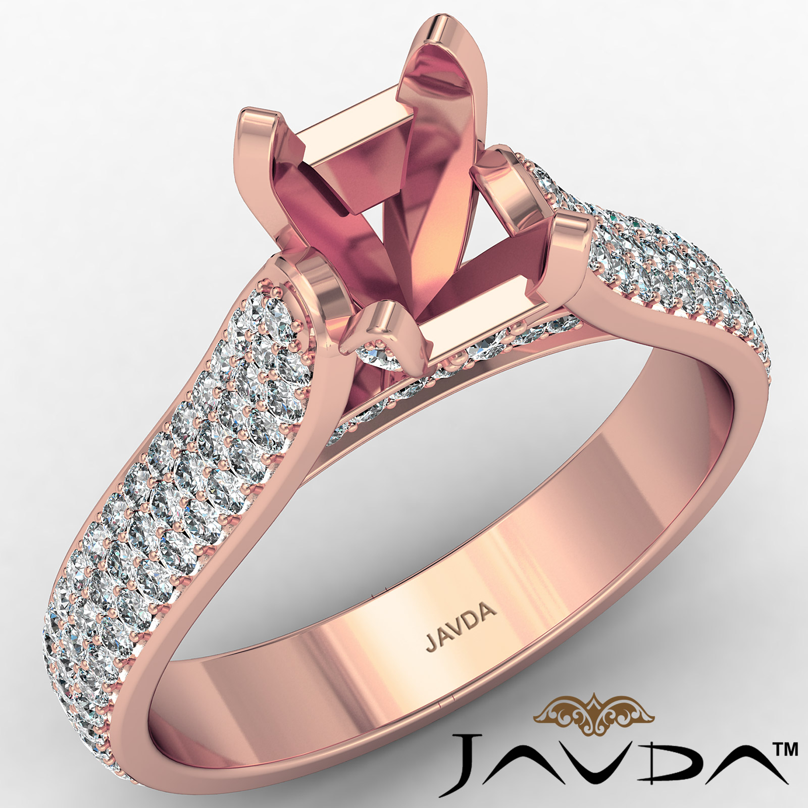 Halo Pave Set Diamond Engagement Cushion Semi Mount Ring 18k Rose Gold (1.45Ct. tw.)